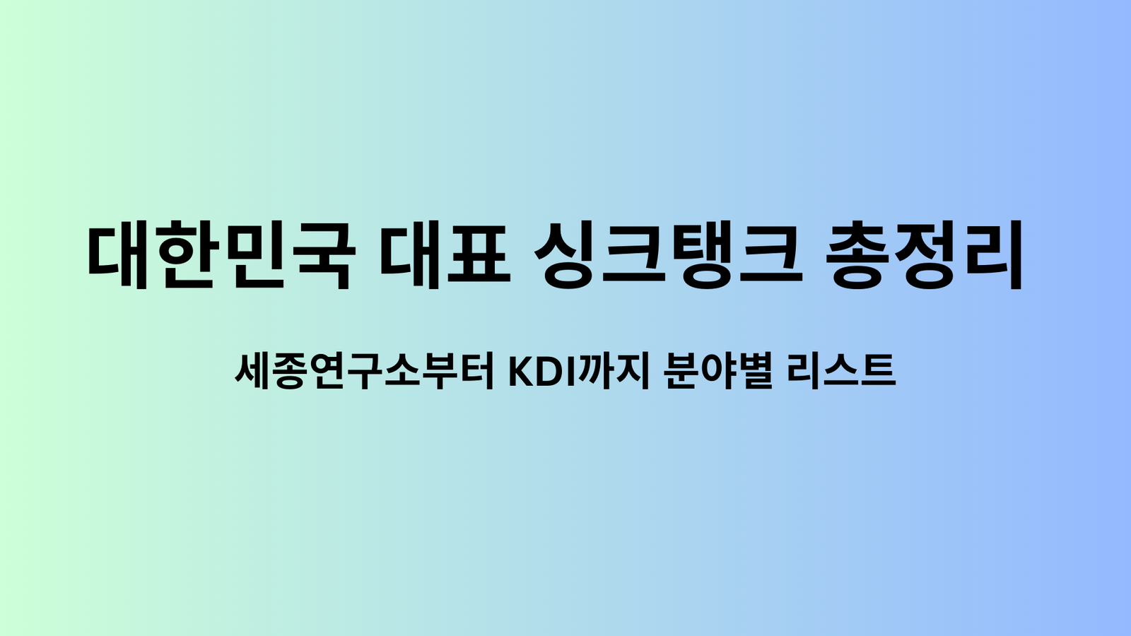 대한민국 대표 싱크탱크 총정리 | 세종연구소부터 KDI까지 분야별 리스트