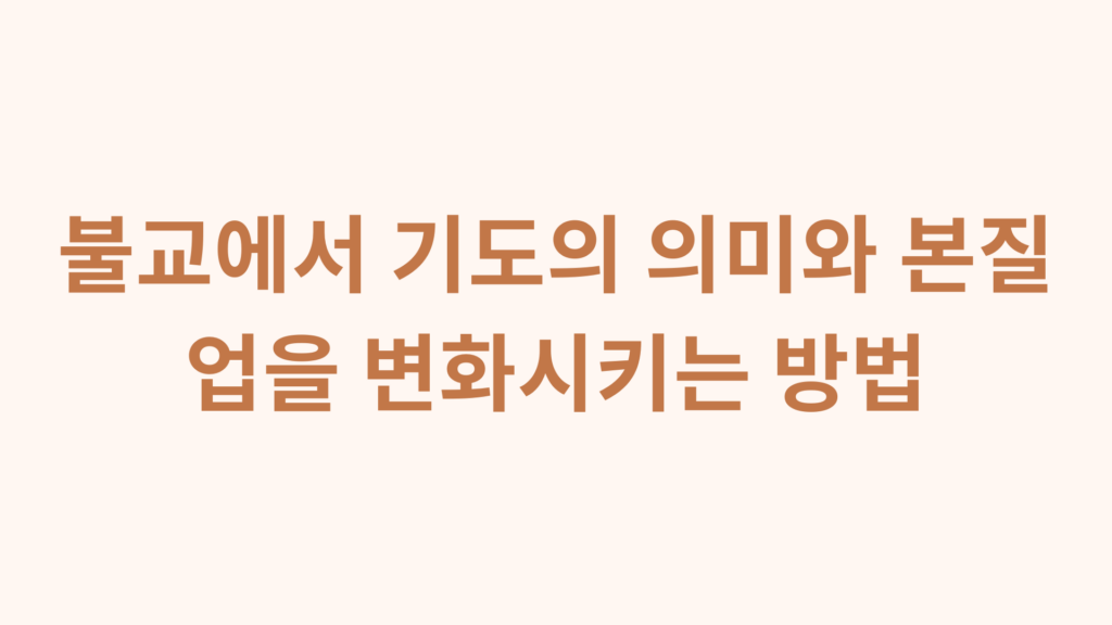 많은 사람들은 기도의 의미에 대해 오해하고 있습니다. ‘기도’라고 하면 종교적인 의례나 막연한 소원을 떠올리는 경우가 많습니다. 하지만 불교의 기도는 다릅니다. 불교에서는 기도를 단순히 “무엇을 주세요”라는 요청이 아니라, 자신의 마음을 다스리고 업(業)을 변화시키는 수행이라고 가르칩니다. 이번 글에서는 부처님의 가르침을 바탕으로 불교 기도의 의미, 업을 변화시키는 기도법, 업장소멸법, 그리고 기도를 통해 현실을 바꾸며 삶을 긍정적으로 바꾸는 방법에 대해 알아보겠습니다.
