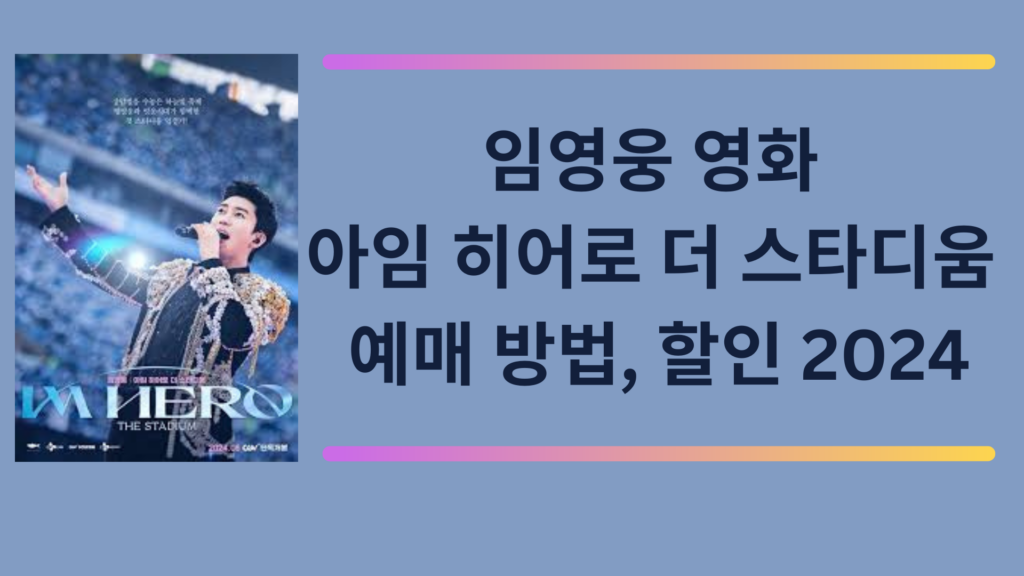 2024년 9월 28일, 대한민국을 대표하는 가수 임영웅의 2024년 5월 서울월드컵경기장 콘서트 실황을 담은 영화 임영웅 아임 히어로 더 스타디움이 전국 극장에서 개봉됩니다. 이번 영화는 지난 서울월드컵경기장에서의 감동적인 순간들을 스크린에서 다시 만날 수 있는 특별한 기회로, 팬들에게는 놓칠 수 없는 소중한 추억이 될 것입니다. 팬들의 열정적인 응원과 함께한 그날의 무대가 얼마나 생생하게 재현될지 기대감이 고조되고 있는 가운데, 영화 예매 방법에 대한 정보를 자세히 안내해 드리겠습니다.