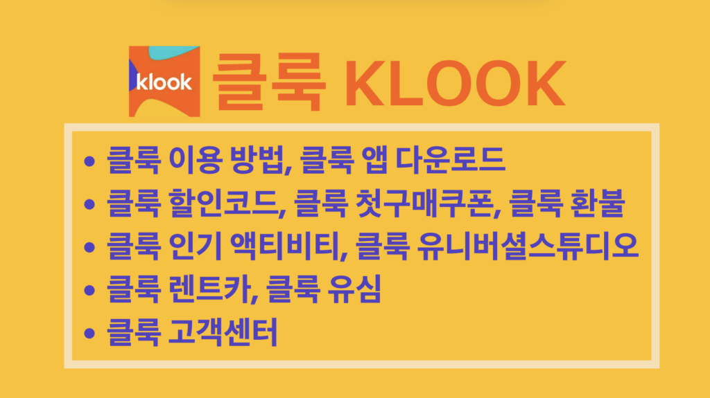 클룩(Klook)은 전 세계 다양한 여행지의 액티비티, 투어, 교통편 등을 쉽게 예약할 수 있는 온라인 플랫폼입니다. 여행을 계획하면서 복잡한 일정 조율과 다양한 액티비티 예약이 부담스러울 때, 클룩(Klook)은 그 해결책이 될 수 있습니다. 클룩을 활용하면 여행 준비를 보다 간편하게 할 수 있으며, 사용자 친화적인 인터페이스 및 다양한 할인 혜택을 받을 수 있어 여행을 더욱 경제적이고 효율적으로 즐길 수 있습니다. 이번 글에서는 클룩의 사용 방법, 다양한 카테고리, 할인 코드 받는 방법, 환불 절차, 고객센터를 알려드리겠습니다.