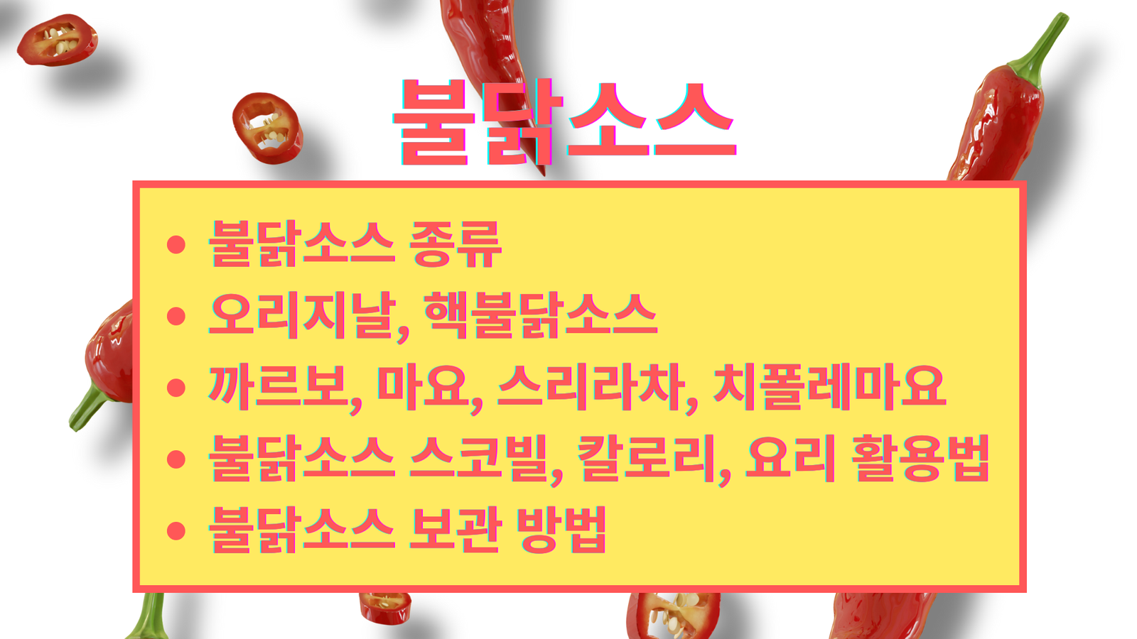 불닭소스 종류, 오리지날, 핵, 까르보, 마요, 스리라차, 치폴레마요, 불닭소스 스코빌, 칼로리, 요리 활용법, 불닭소스 보관 방법