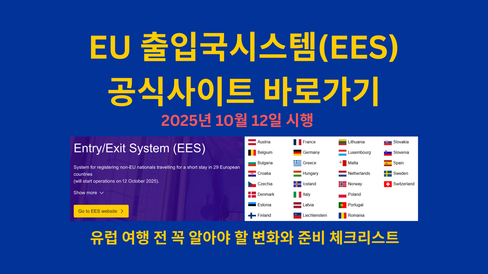 EU 출입국시스템(EES) 공식사이트 바로가기 | 2025년 10월 12일 시행· 유럽 여행 전 꼭 알아야 할 변화와 준비 체크리스트